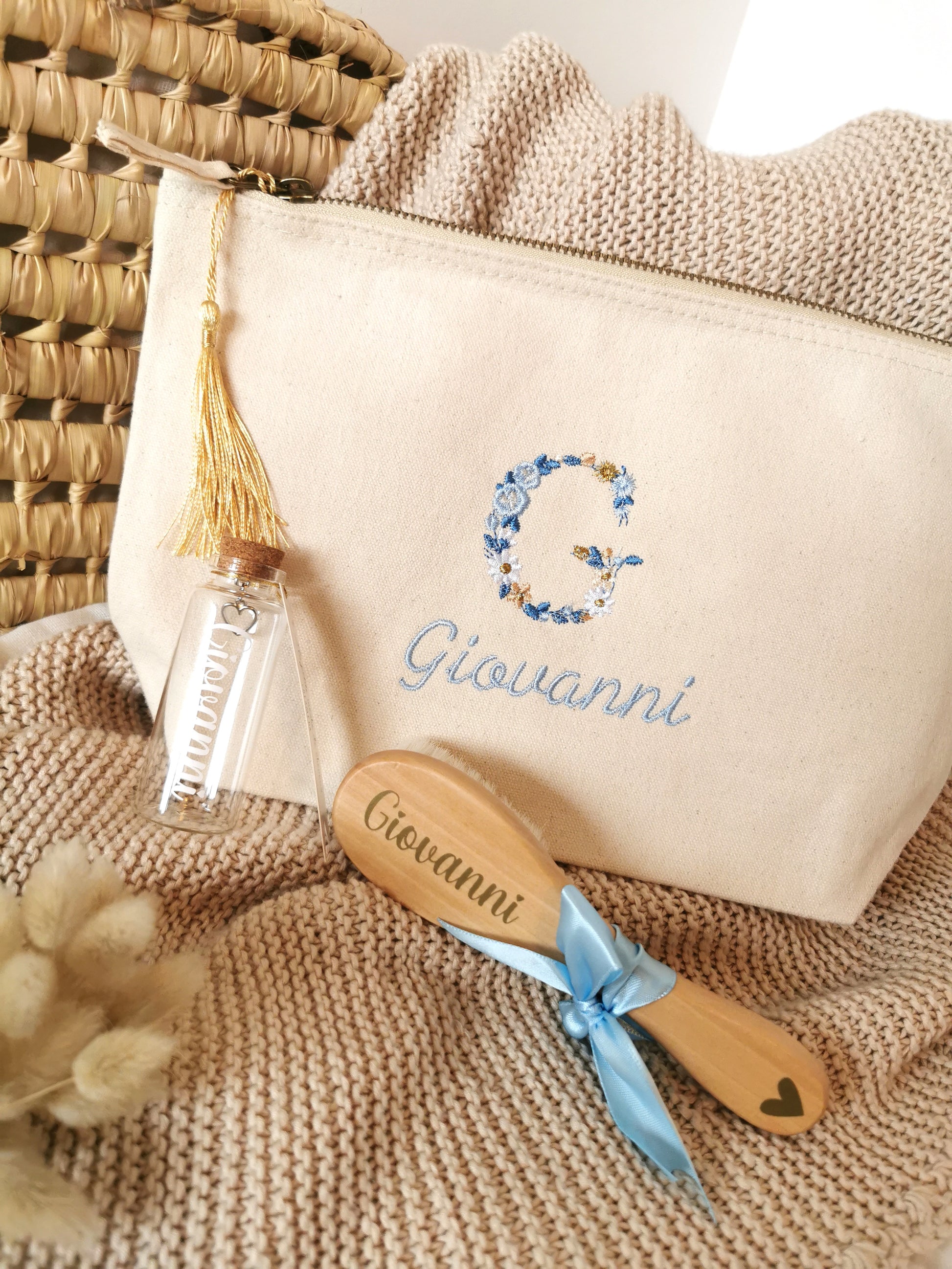Par dĂ©faut, nous broderons une belle lettre fleurie, ainsi que le prĂ©nom entier juste en dessous. Mais n'hĂ©sitez pas Ă vous rĂ©fĂ©rer aux diffĂ©rents choix de broderieÂ